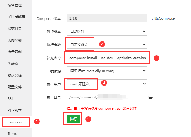在安装完毕后,在 PHP 的禁用函数里删除 putenv、 exec、 proc_open、 shell_exec,并且在扩展里安装 fileinfo redis